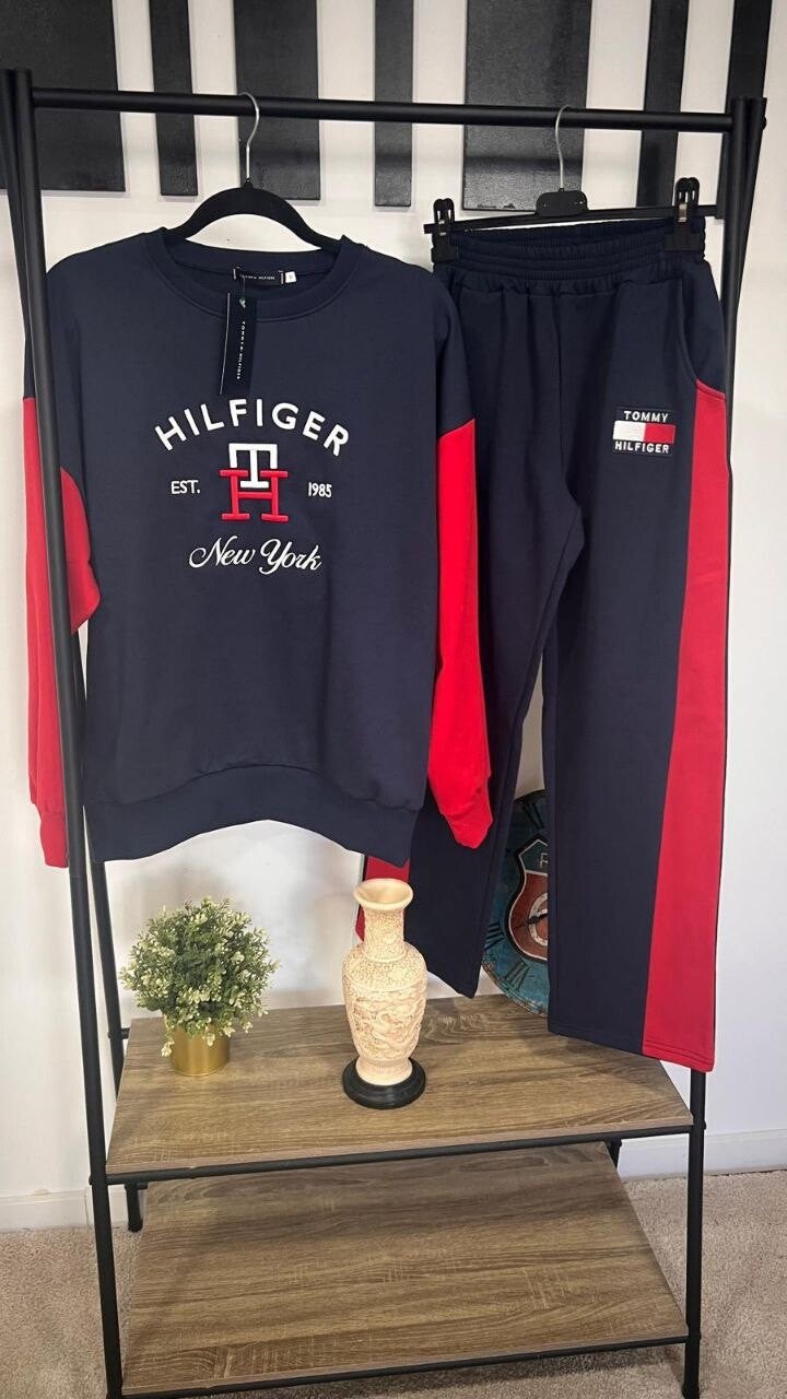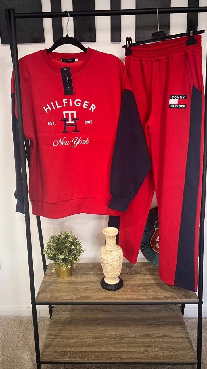 Conjuntos deportivos de dos piezas compuestos por sudadera y pantalón. La sudadera presenta diseño con logo bordado en el pecho y detalles en las mangas, mientras que el pantalón cuenta con cintura elástica y logo lateral. Elaborado en tejido cómodo y suave, disponible en distintos colores.